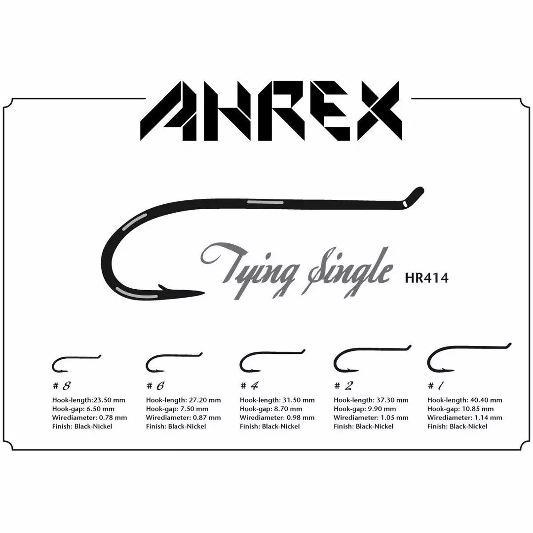 The Ahrex HR414 is a classic salmon fly hook with heavier wire that will hold the strongest fish. The stealthy finish gives the hook a more modern look, but with a single hooks characteristic design. Small barb and a tapered eye. These hooks are extremely sharp and made with the best materials and technology available.