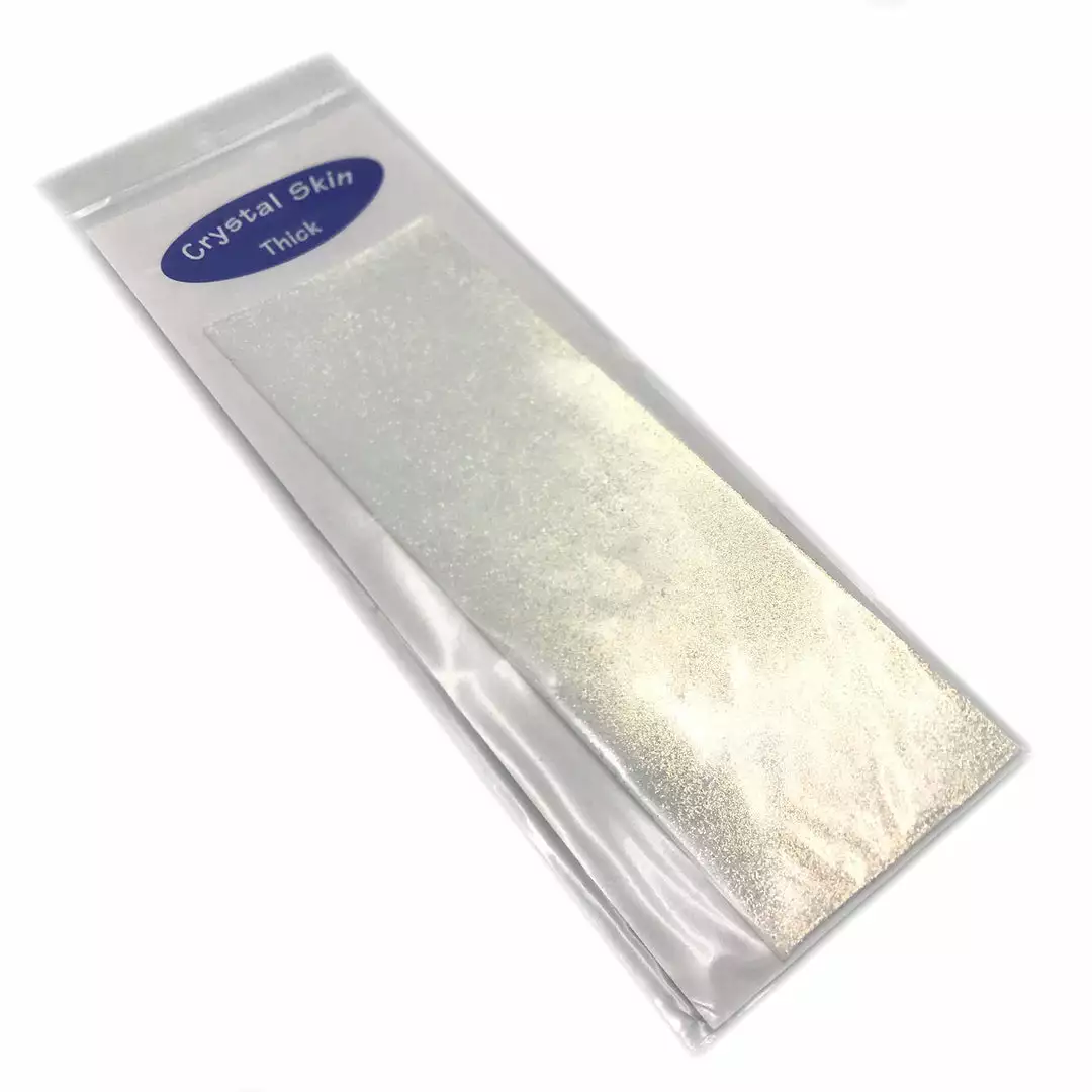 Crystal Skin is a soft, flexible, and “chewy” adhesive backed material used for many fly tying applications (similar to Sili Skin). It’s an incredibly fun material to work with and can be cut to shape, stretched, folded, or layered over materials to achieve a desired look. Use Crystal Skin for many popular baitfish, shrimp, crab, caddis, and scud patterns such as the Gummy Minnow, Ooey Gooey Grub, and Sili Skin Caddis. 1 sheet per pack (2″ x 6.5″)