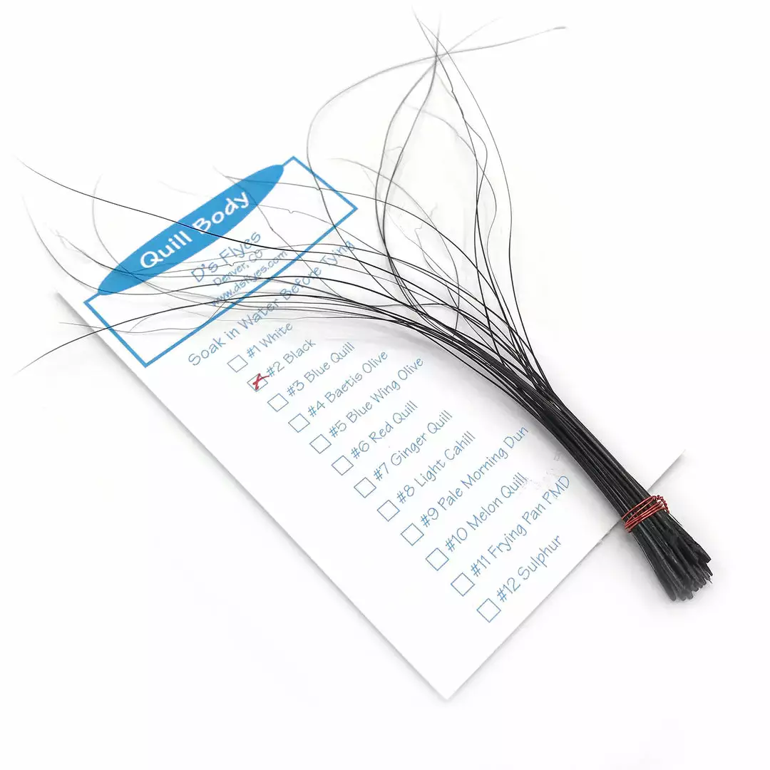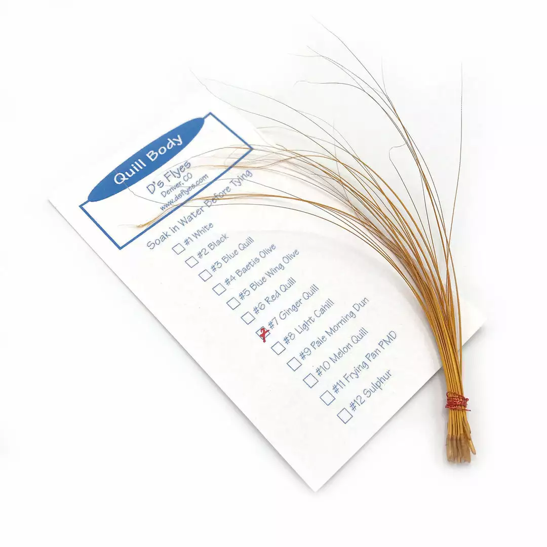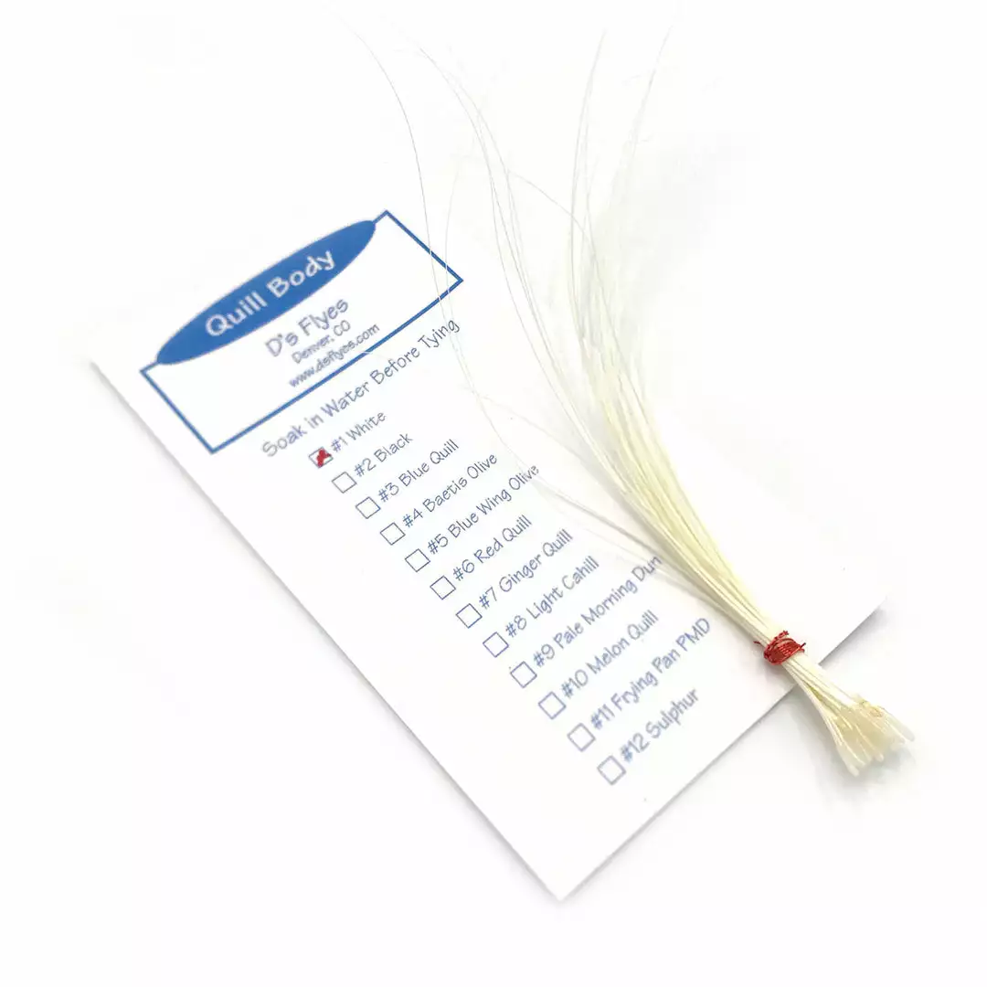Some of the finest dry fly patterns are wrapped with natural quill bodies such as the A.K. Best style of dry flies. These premium quill bodies are long and tapered for a natural appearance. Bleached and dyed for even coloring, these are some of the best quill bodies available.