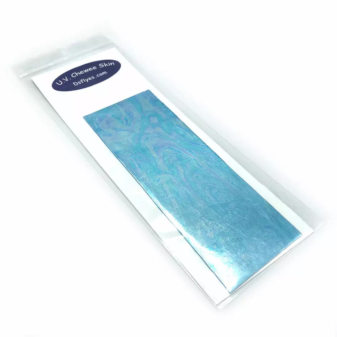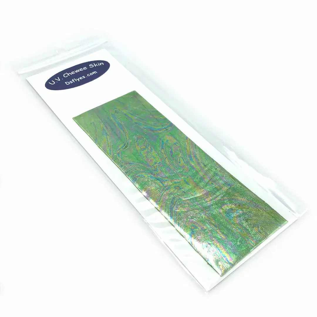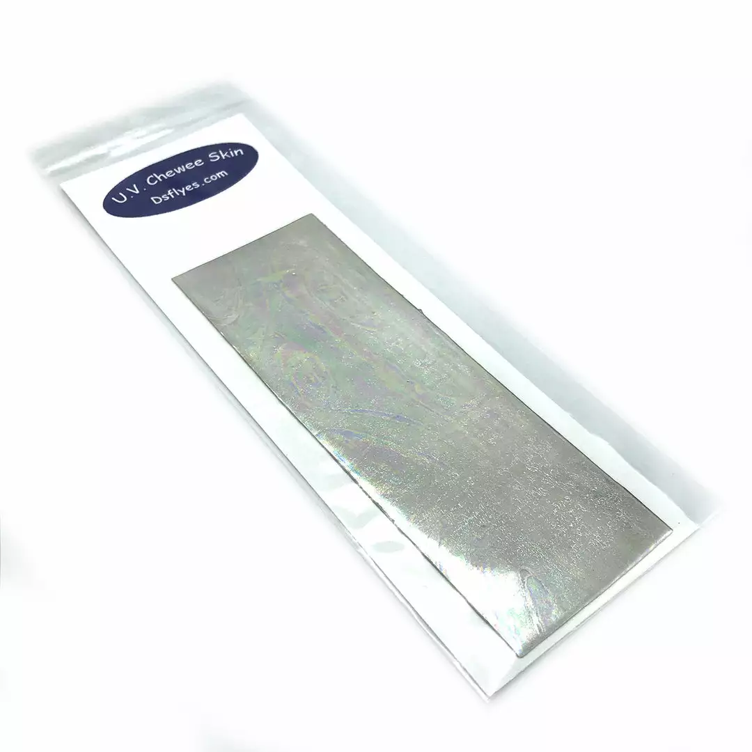 UV Chewee Skin is a pliable material that can be cut and shaped for many fly tying applications. Great for wing cases, bodies, ribs and more. This material wraps easily, has a natural sheen, and since it DOES NOT have an adhesive backing, it is extremely easy to use. The UV reflective qualities of Chewee Skin also make it more visible to trout, salmon, steelhead, and other game fish, even more so than fluorescent materials. UV Chewee skin has a multitude of uses at the fly tying bench and it’s a material that adds that little something that the fish just love. Cut it into strips, wrap it around the hook, and you have an easy and effective worm pattern. The possibilities are endless with this material, so have fun and get creative. Available in 19 fish-attracting UV colors!