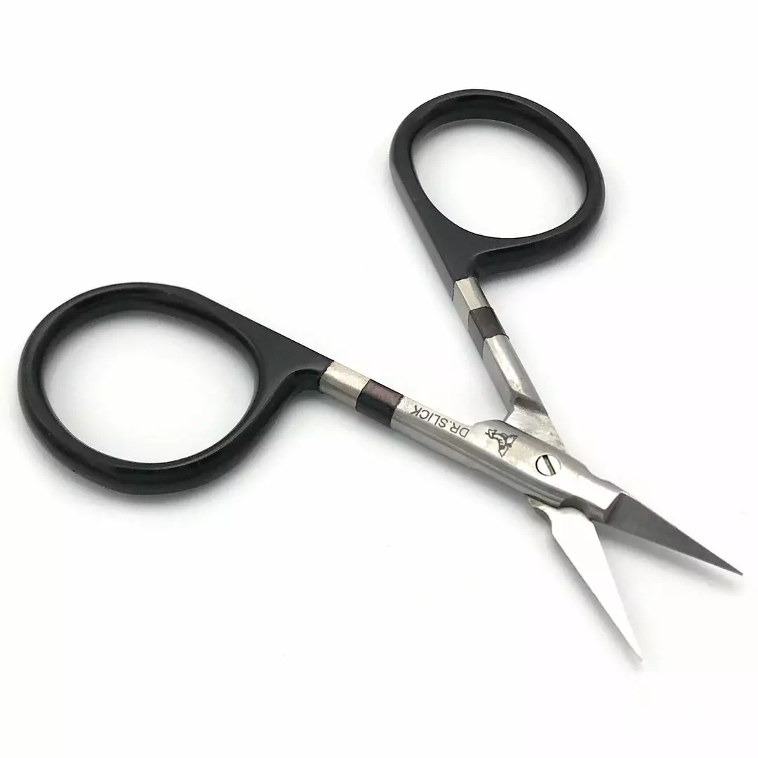 These Dr. Slick Arrow Scissors feature tungsten carbide blades that are welded onto the scissor blade frame. Tungsten carbide is 7x harder than stainless steel and holds an edge longer. These scissors are extremely sharp and will handle the toughest fly tying materials, including modern day synthetics. If you’re looking for the strongest, sharpest, and longest lasting fly tying scissors available, look no further than Dr. Slick’s tungsten carbide scissors.