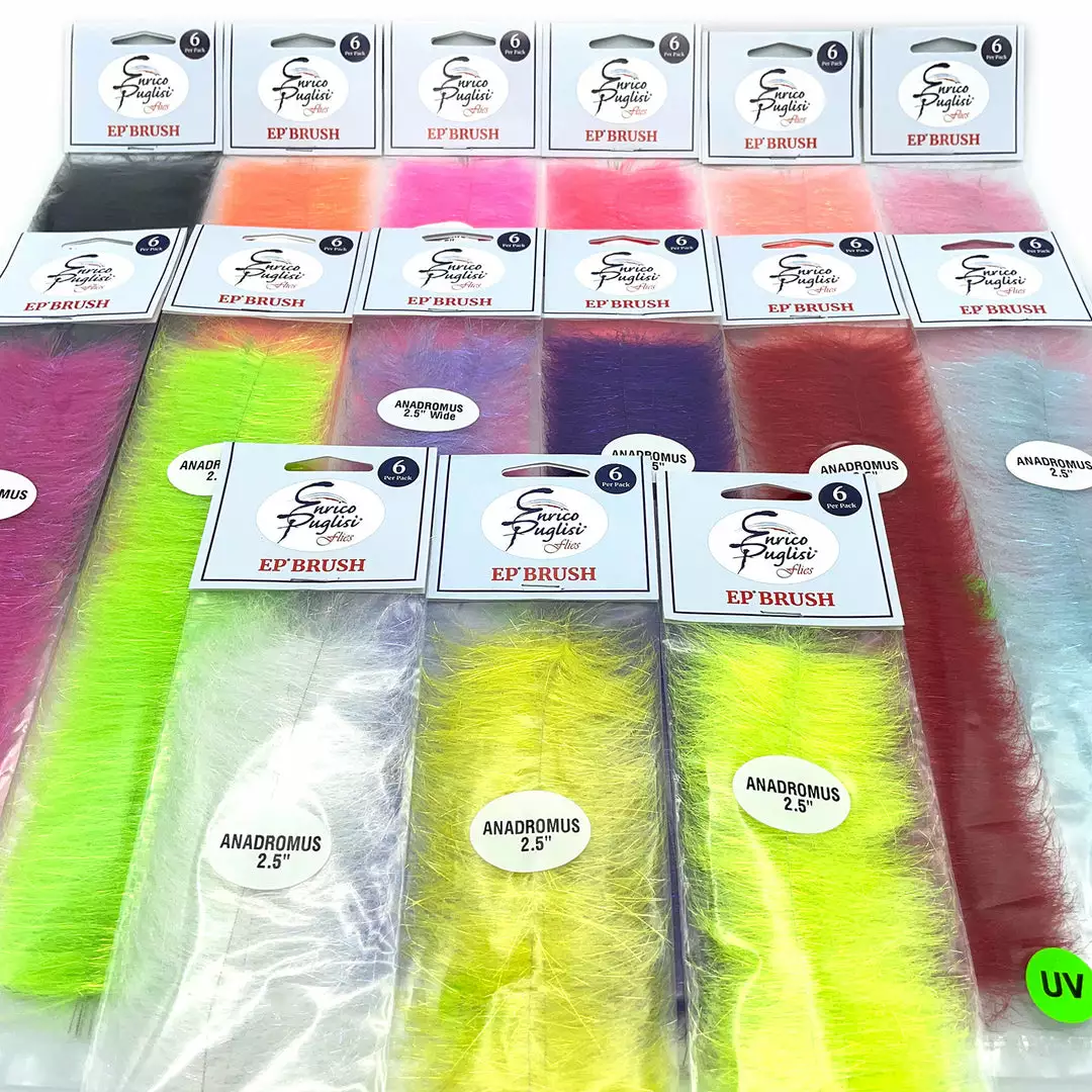 The EP Anadromus Brush is one of our favorite fly tying materials for creating salmon and steelhead fly patterns. These brushes can also be used for large baitfish and saltwater fly patterns to target anything from bass, pike, and musky to shark and barracuda. EP Anadromus Brushes are a masterful blend of EP Silky Fibers and EP Sparkle Fibers that are bound together in a stainless steel wire core. Simply wrap it around your fly, tie it off, and you’re ready to go! EP Anadromus Brushes come highly recommended by top fly fisherman from around the world and are available in 15 popular colors!