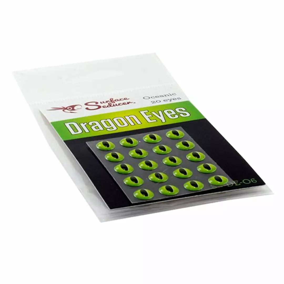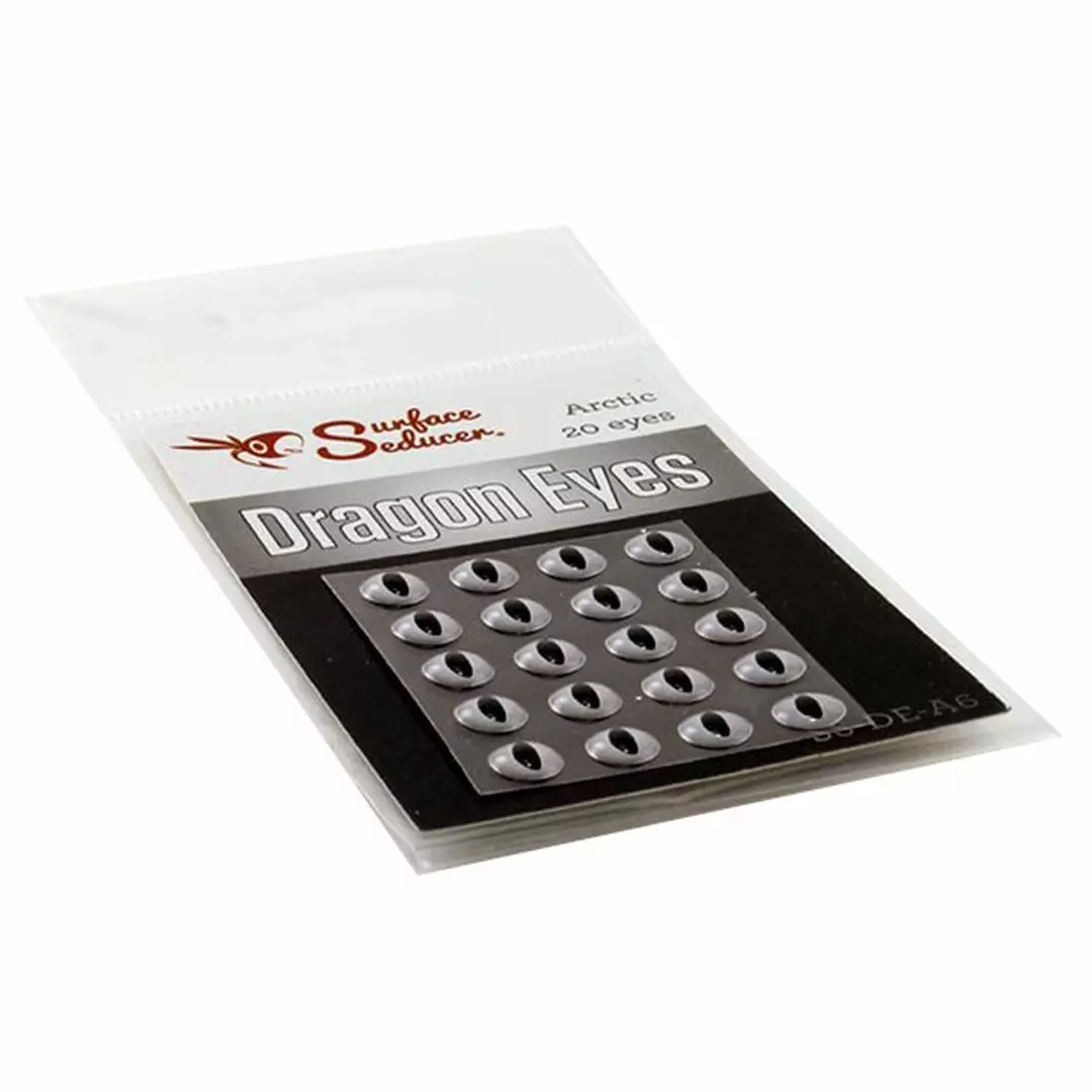 Take your fly tying to the next level with these vibrant, impressionistic 3D domed eyes. Surface Seducer Dragon Eyes are specifically designed to fit and match the full range of Surface Seducer foam products such as Double Barrel Popper Bodies. These realistic eyes imitate a variety of reptiles, amphibians, rodents, and other creatures that fish love to strike. Not only are they great on popper bodies, but they also can be used on Fish-Skull Sculpin Helmets, Fish Masks, Baitfish Heads, and any fly pattern or fishing lure that you want to add a unique look to. They feature an adhesive stick-on backing, but for a permanent solution, we recommend adding a dab of Zap A Gap to keep them secure. Surface Seducer Dragon Eyes are available in 4 fish-attracting colors and 4 sizes to suit all of your fly tying and lure making needs. 20 eyes per pack!