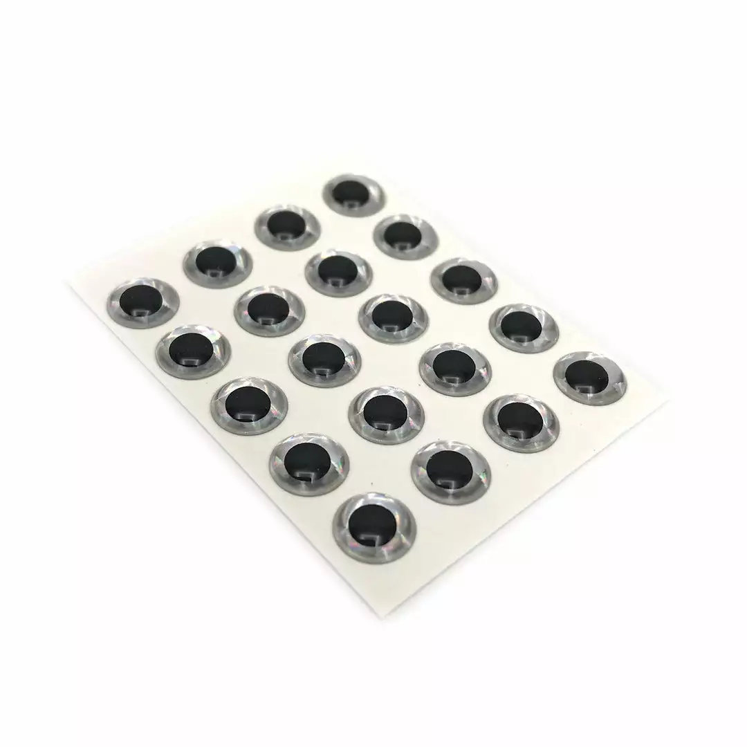 3D adhesive holographic eyes are the ultimate in realistic domed fish eyes. Adhere these stick-on eyes to your favorite fly patterns and fishing lures to add a lifelike appearance. Available in sizes to fit everything from small trout patterns to huge saltwater flies. We recommend using Zap-A-Gap or a UV resin for permanent adhesion.