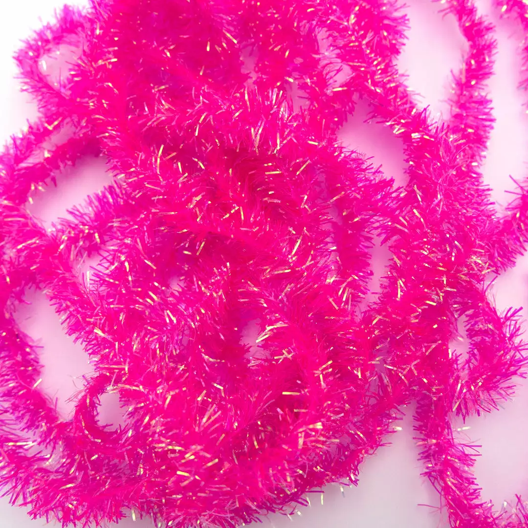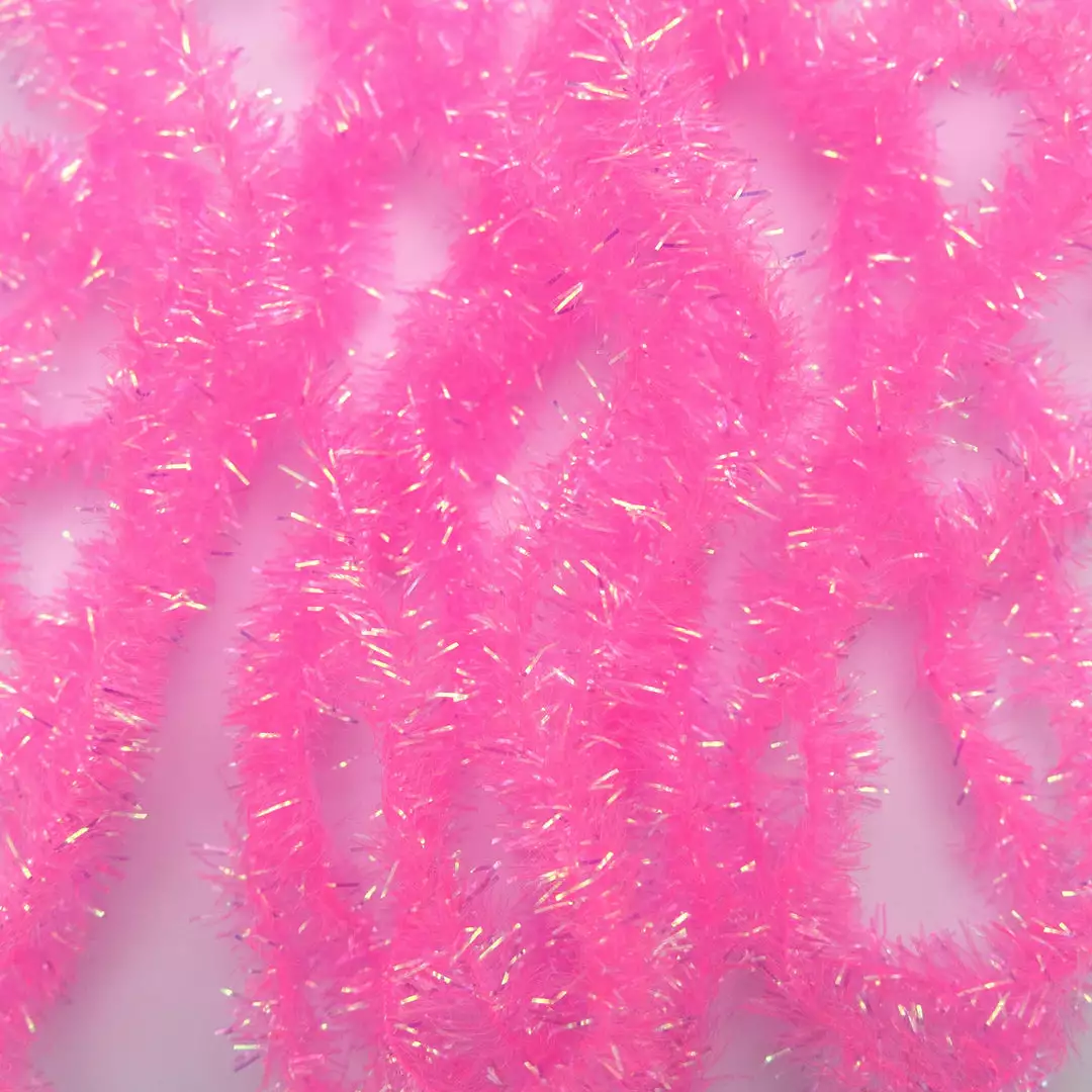 Hareline’s Cactus Chenille is a loose weave mylar chenille, similar to ice chenille, but with pearlescent fibers for added sparkle. Cactus chenille adds a lot of flash, color, and action to your fly and is an extremely easy and effective material to work with. Wrap it tightly for a thin bodies, or multiple times for larger bodies. Great for tying wooly buggers, bass flies, plus the Davis “SPANKER”, a world record winning silver salmon fly fished throughout Alaska.