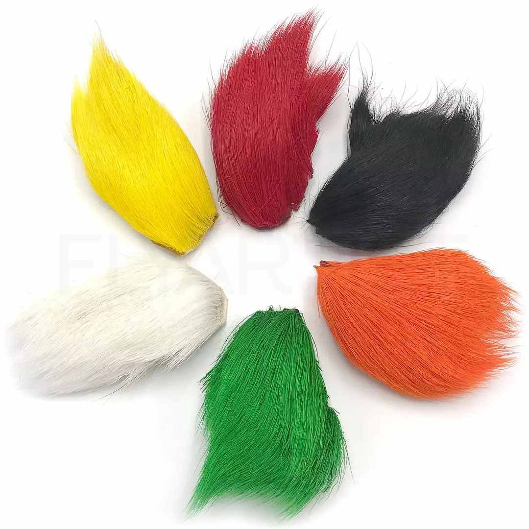 Hareline’s deer belly hair combo packs are an excellent way to get a nice selection of deer belly hair without having to buy each color individually. Each combo pack contains 6 deer belly hair pieces in assorted colors. They are dyed over bleached white, so the colors are extremely vibrant. Colors may vary by pack, but the photo is a good representation of what you will receive. These deer belly hair packs are the perfect choice for tying bass bugs and spinning deer hair.