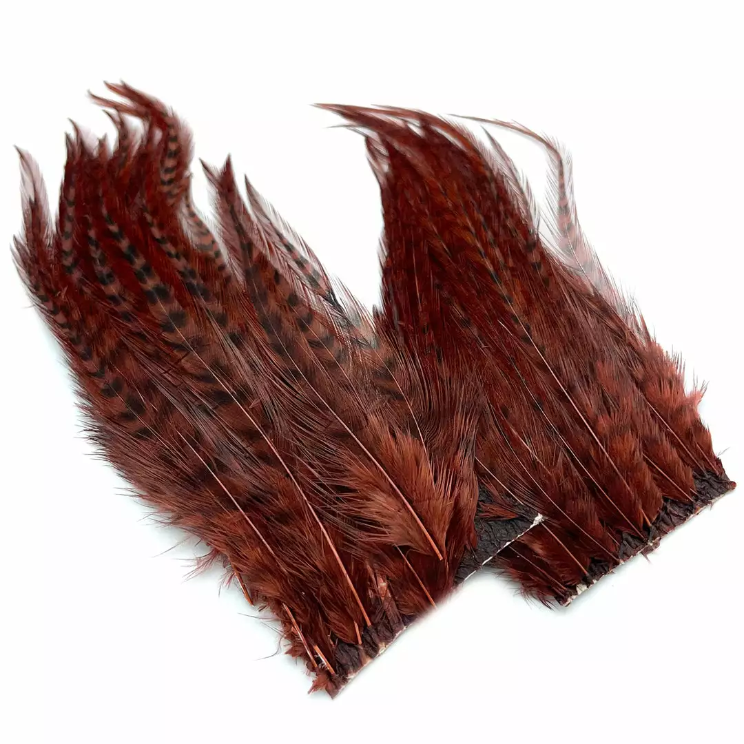 Hareline’s Bugger Hackle Patches feature two sections of saddle feathers which are well suited for tying medium to large sized wooly buggers and other similar patterns. The feathers on these Bugger Hackle Patches measure approximately 6 inches in length, giving them the perfect amount of taper when palmered around your hook. If you’re looking for a great way to tie up some wooly buggers for your fishing season, look no further than these bugger hackle patches from Hareline. Available in 7 of the most popular colors!