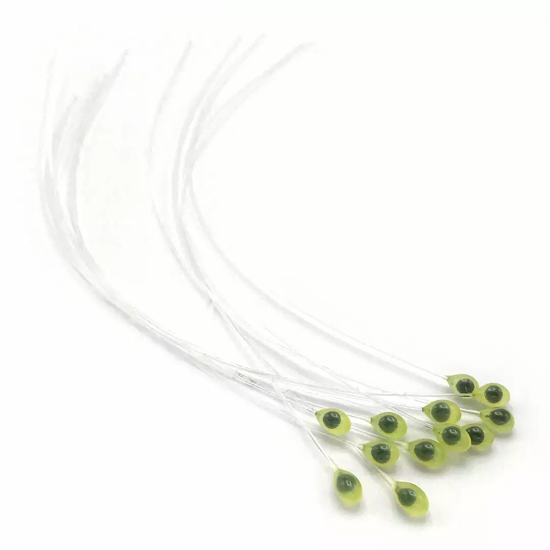 Epoxy mono crab eyes allow you to create realistic crab, shrimp, and crawfish eyes with ease. These epoxy-coated eyes are extremely durable and feature a long stem for tying onto your hook. Great for bonefish and permit flies.
