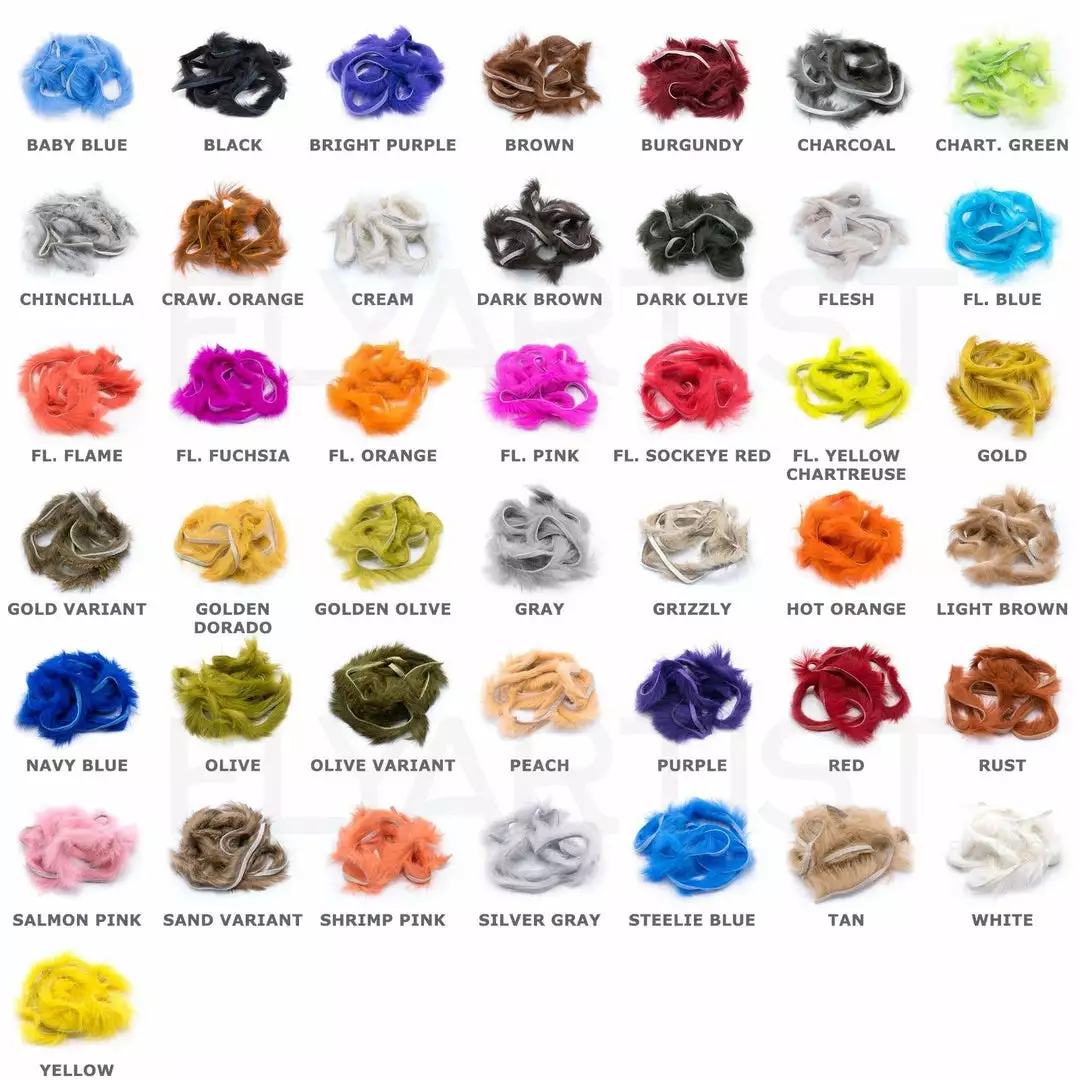 Hareline’s Rabbit Strips are cut from Grade A rabbit hide and are the best quality rabbit strips on the market. Each strip is soft and full, evenly dyed, and creates an attractive movement in the water. These 1/8” standard strips are well suited for both fresh and saltwater patterns in a wide range of sizes. Great for zonkers, leeches, crayfish,and a multitude of other patterns.
