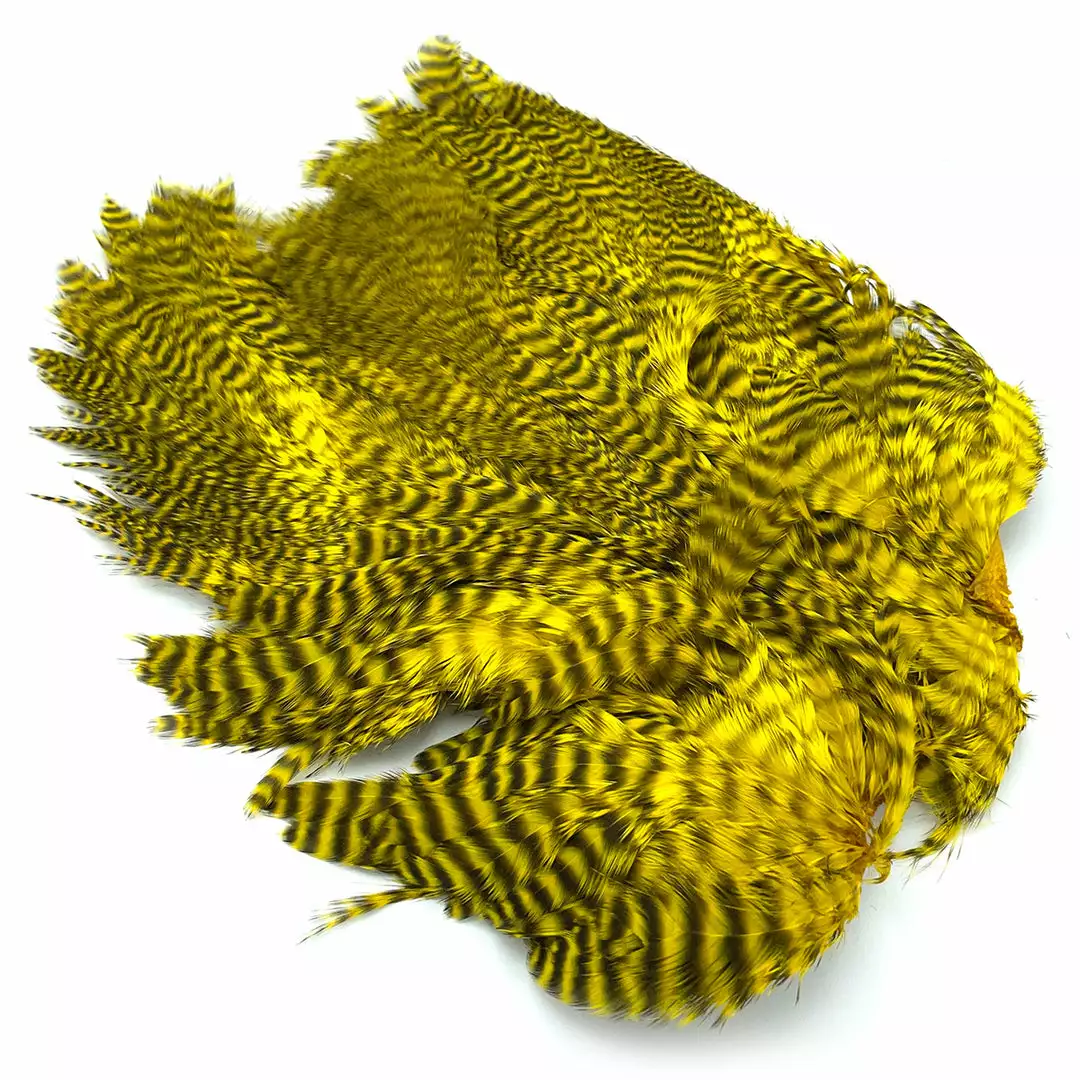 Hareline’s Grizzly Soft Hackle Marabou Patches offer the fly tier a wide variety of feather sizes to choose from. The barbs of these soft hackle feathers are webby and add a flowy, lifelike movement in the water. The striped pattern of these grizzly marabou feathers add a sense of realism and contrast that will trigger the most stubborn fish to bite. The stems at the tip are soft while the stem at the base get stiffer, perfect for smaller splay tail patterns. These premium soft hackle patches are ideal for feather gamerchangers, streamers, and other fresh and saltwater flies. Grizzly soft hackle marabou can be hackled, used for tails, gills, and so much more. If you need a large amount of soft hackle feathers in a wide variety of sizes, we can’t recommend these grizzly soft hackle patches enough. Available in 7 popular colors!