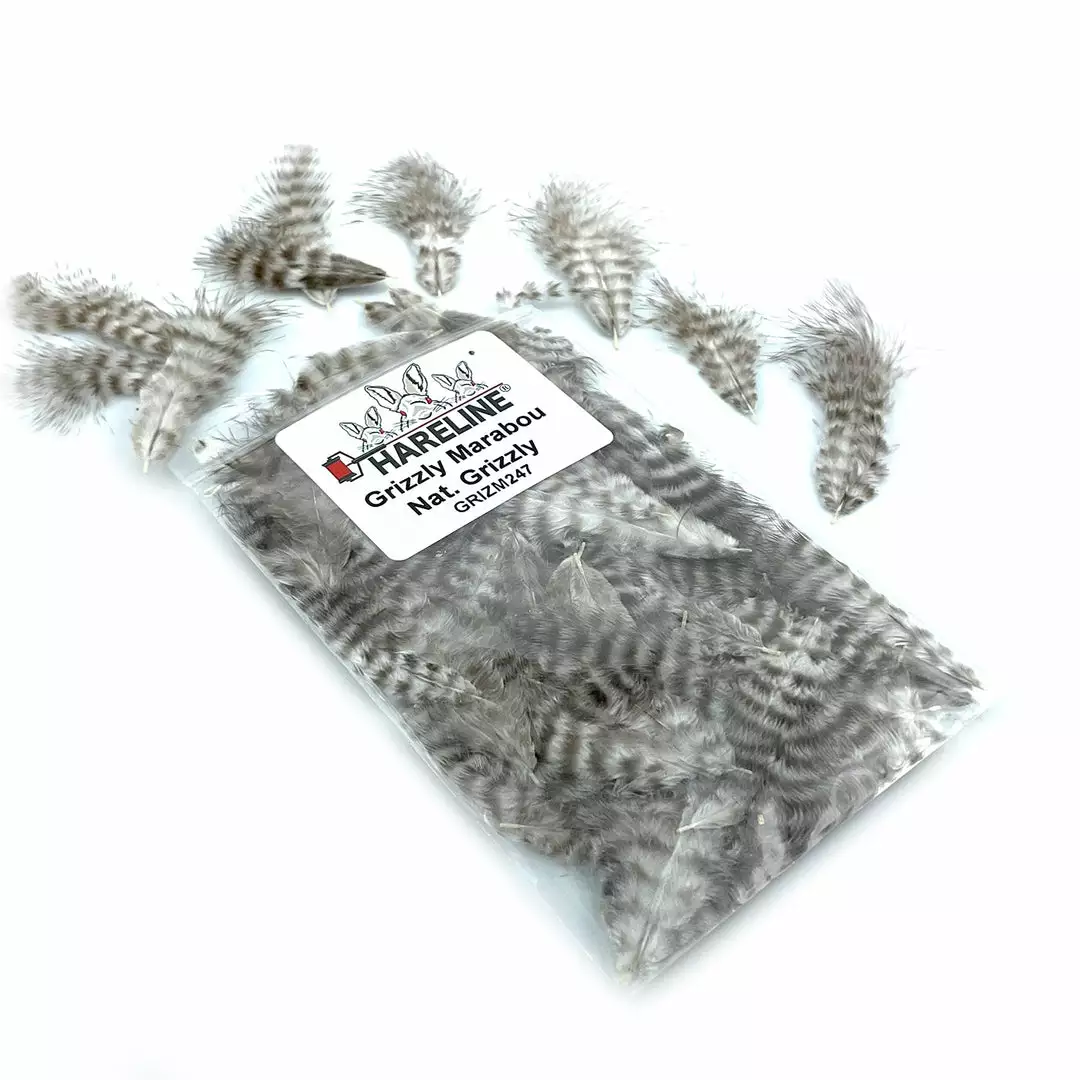 Hareline’s Natural Grizzly Mini Marabou Feathers, also known as Chickabou, are taken from the feathers of a chicken and are a great fresh & saltwater fly tying material for bonefish, permit, and more. The natural grizzly striped pattern creates a contrast that is very effective in getting the attention of hungry fish. These high quality mini marabou feathers are nice and webby, making them the perfect choice for tying small streamers, nymphs, and emerger flies where a nice soft hackle is ideal. They are also great for tying smaller bass and crappie jigs. Hareline Natural Grizzly Mini Marabou is available in 10 fish-attracting colors, so try out a few colors and see what the fish are biting on!