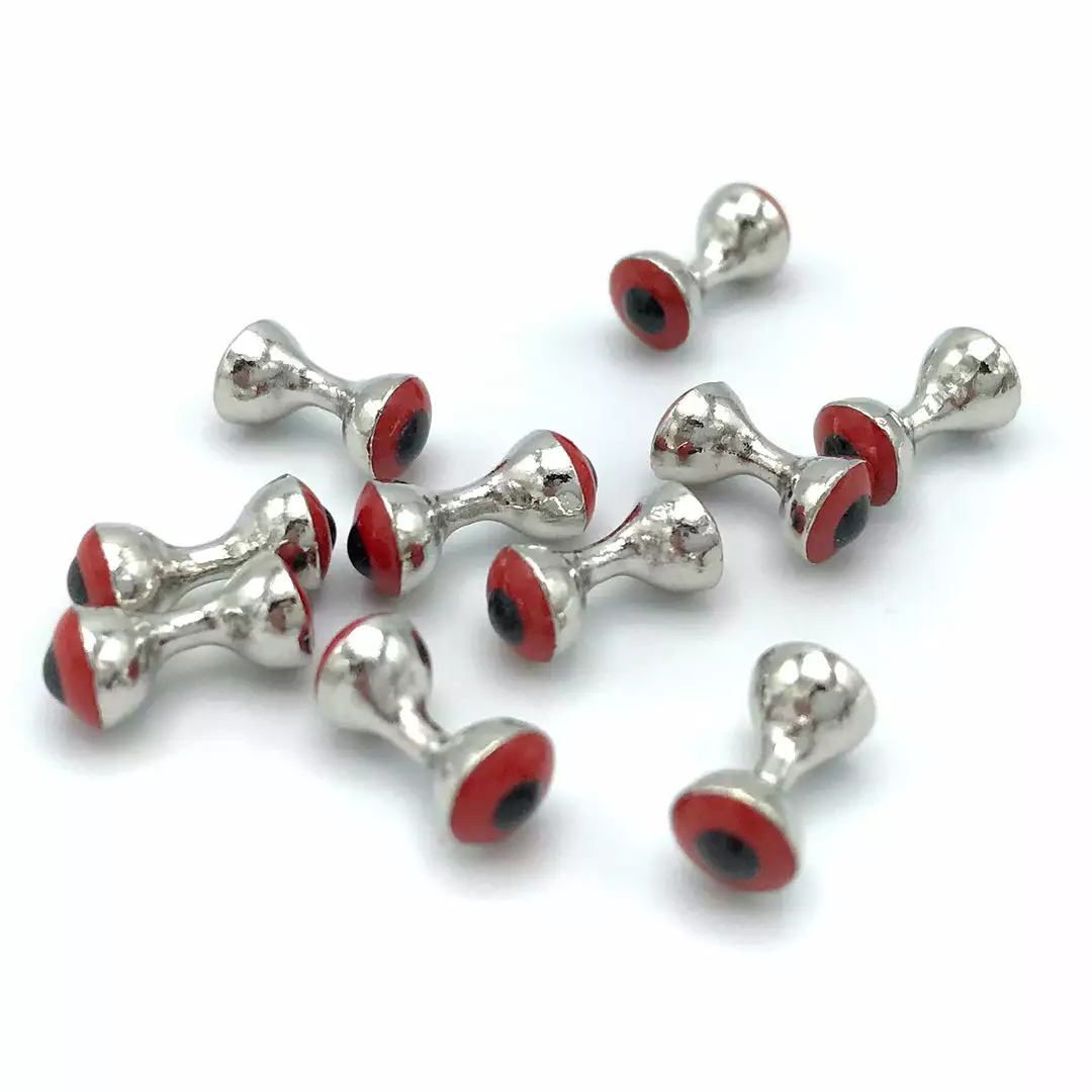 Hareline’s Tungsten Predator Eyes are a popular fly tying material for tying large-profile weighted streamers. These heavy metal dumbbell eyes will sink your flies at a faster rate, getting you down to the strike zone where the fish are biting. They feature an offset axis which lowers the center of gravity on your hook and allows for a more streamlined fly. A popular choice for saltwater, salmon, and bass flies. A must-have fly tying material for tying the popular clouser minnow as well. Tungsten predator eyes are nickel in color and are available in your choice of two sizes and 3 different colored eyes. Try these out, we can’t recommend them enough! 10 Eyes Per Pack.