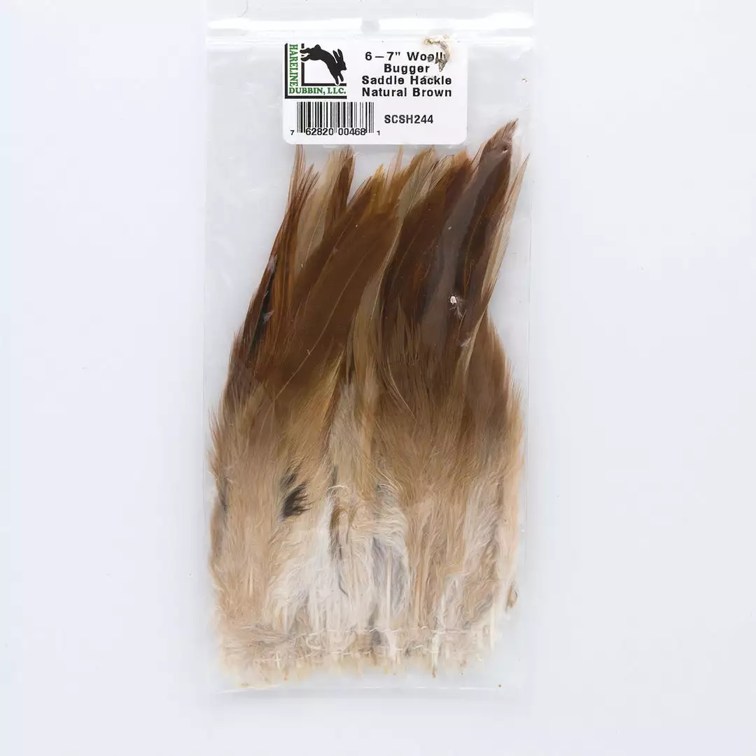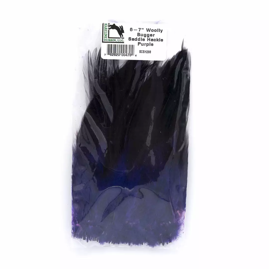 Hareline’s wooly bugger saddle hackle are specially selected feathers for palmering wooly buggers. These high quality feathers are very webby with stems that are excellent for winding. Perfect for tying streamers as well as collars on steelhead and sculpin patterns.