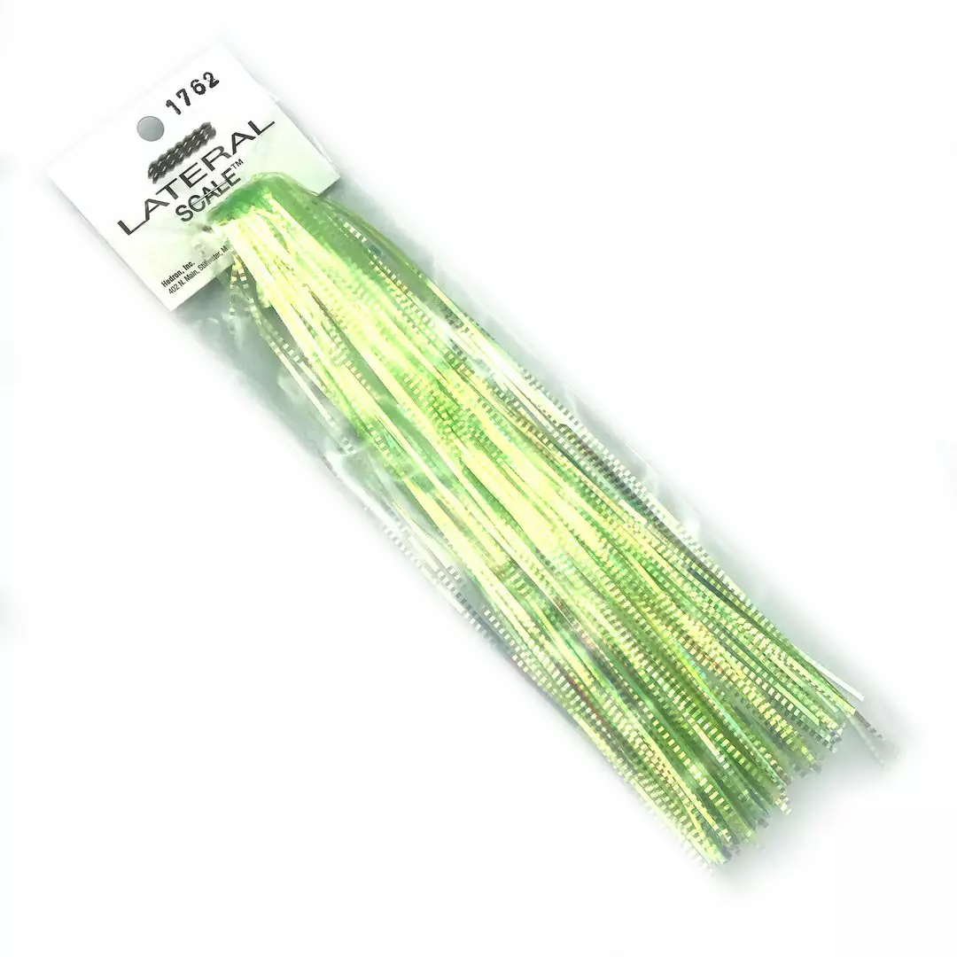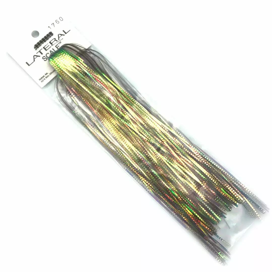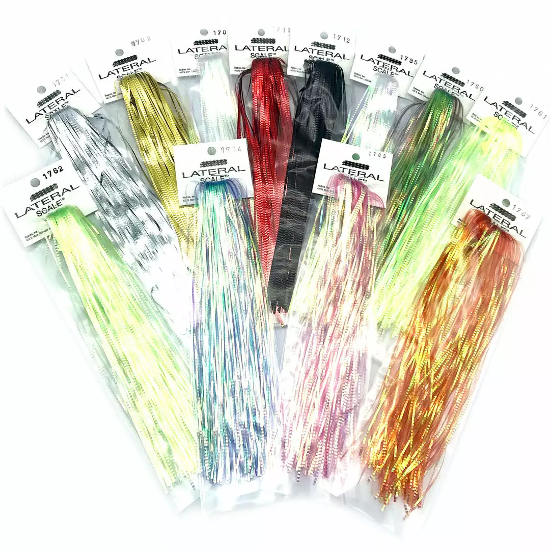 Hedron Lateral Scale is a durable saltwater Flashabou that is crimped for a scaled look and creates an irresistible fluttering action in the water. It is great for large freshwater and saltwater minnow and baitfish patterns as well as bucktails, spinnerbaits, jigs, and poppers for fishing for warm water species. Add a single strand on each side of your fly and BAM! Lateral Scale is available in your choice of solid and pearl colors. Pick up a few colors to try and see how effective this material is in triggering fish to bite!