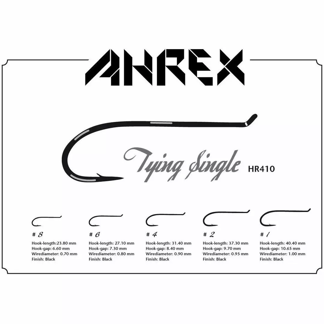 The Ahrex HR410 is a classic single salmon fly hook. Many flies still look fantastic on a classic looking up eyed black single hook. That is exactly what the HR410 is for. Ahrex hooks are extremely sharp and made with the best materials and technology available.
