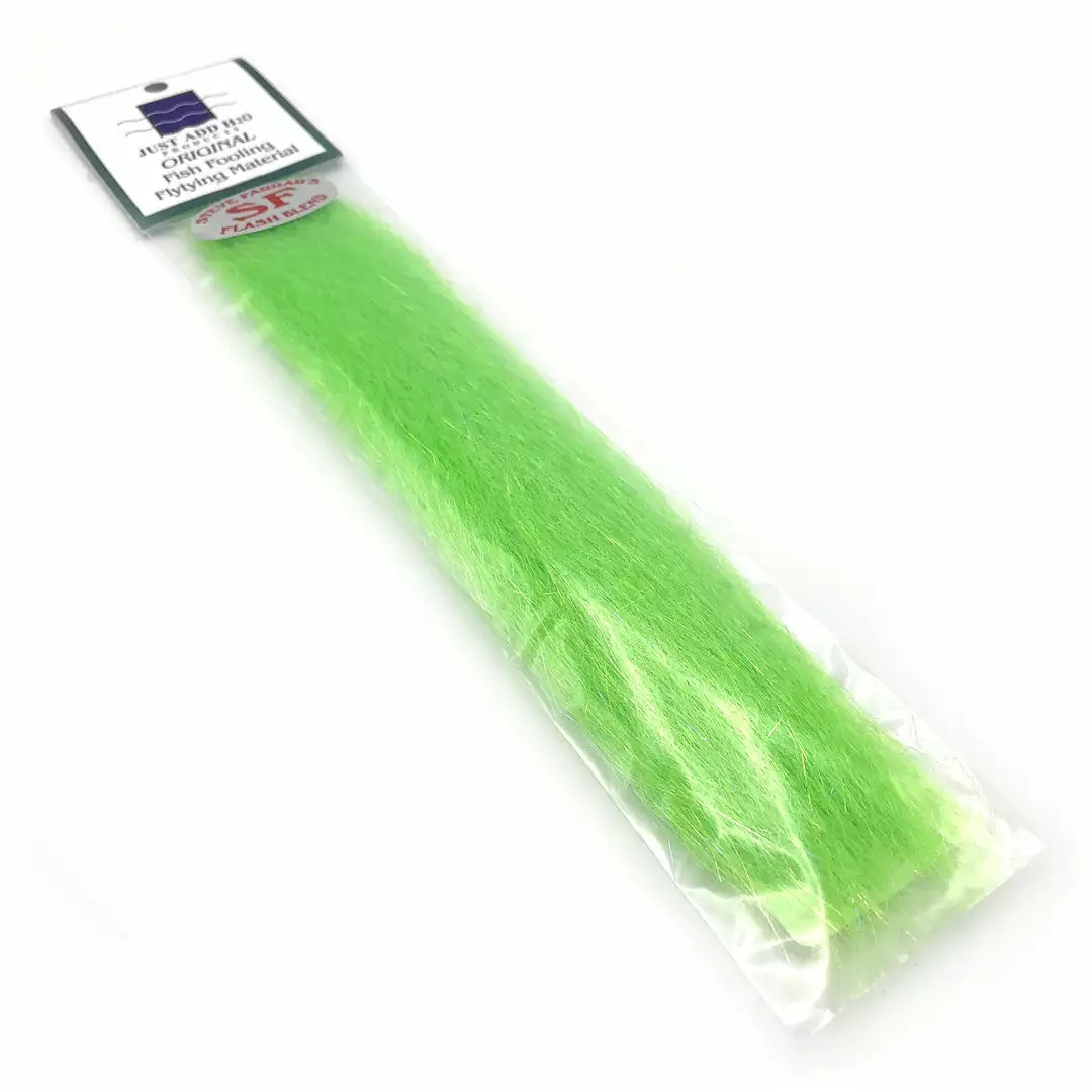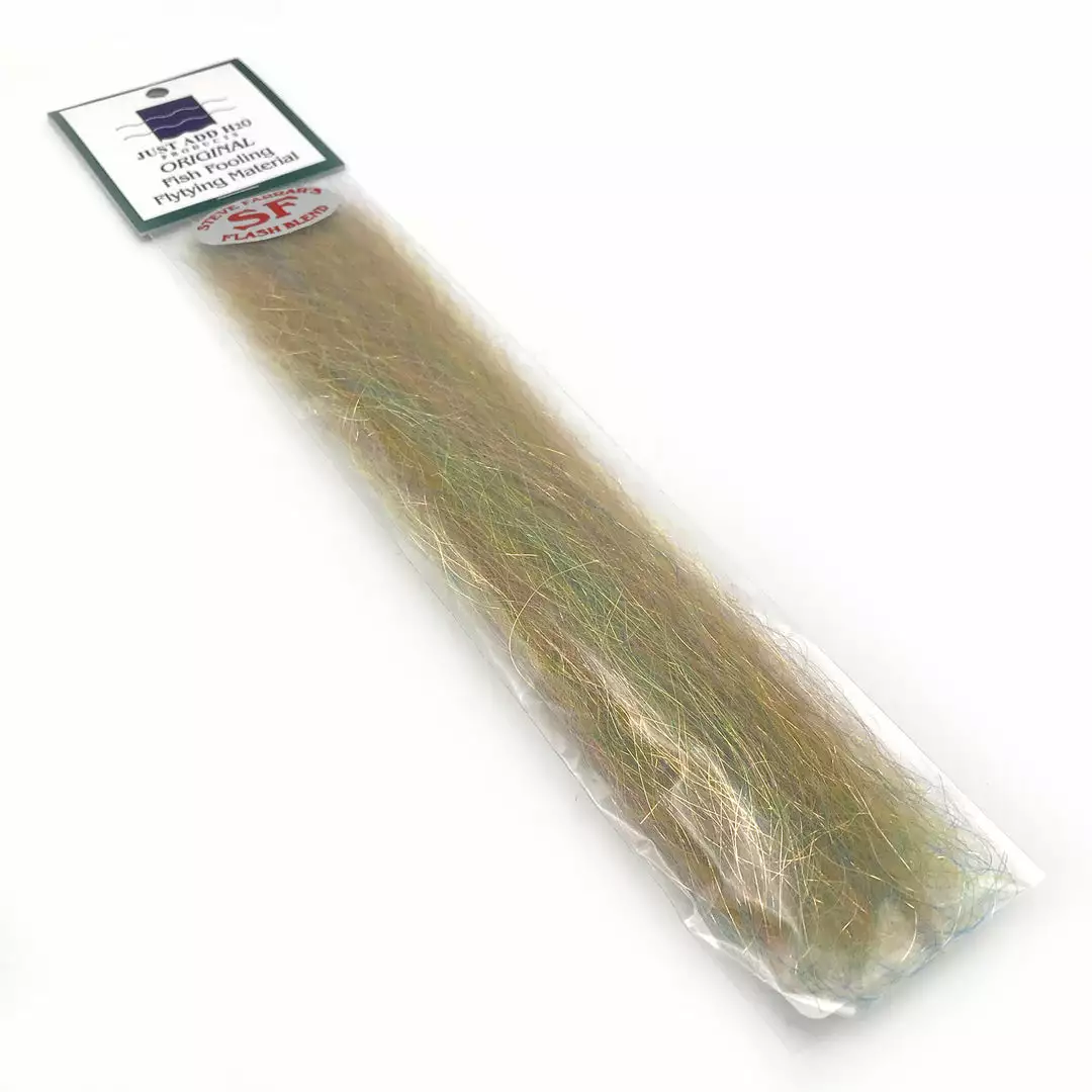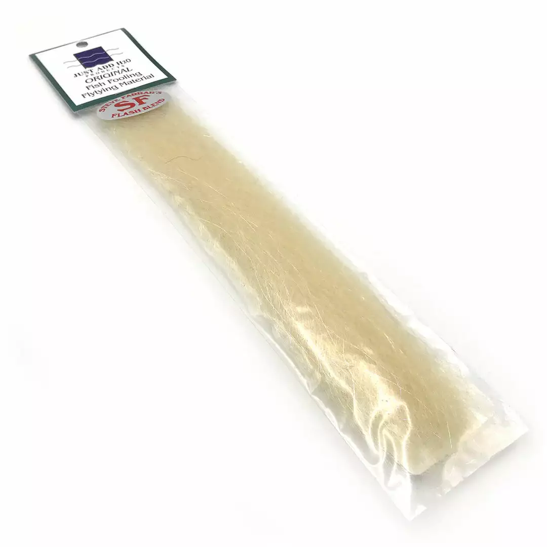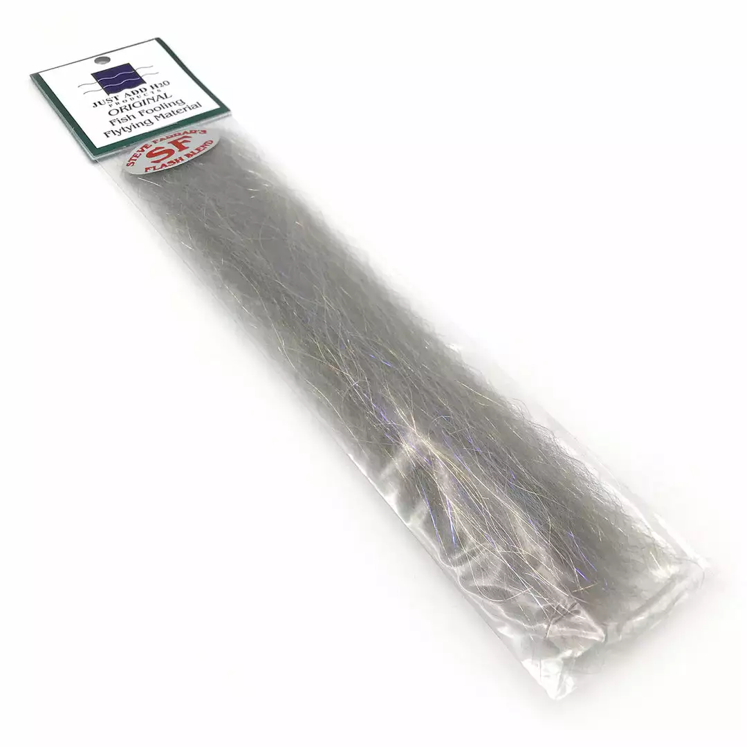 Steve Farrar SF Blend is a full-bodied streamer material with Slinky fibers and angel hair flash. Used for fresh and saltwater baitfish imitations, Flash Blend tapers beautifully, holds it’s shape well in the water, and has an incredible lifelike movement. This stuff is widely regarded by fly tiers as the best saltwater streamer material. We can’t recommend it enough.
