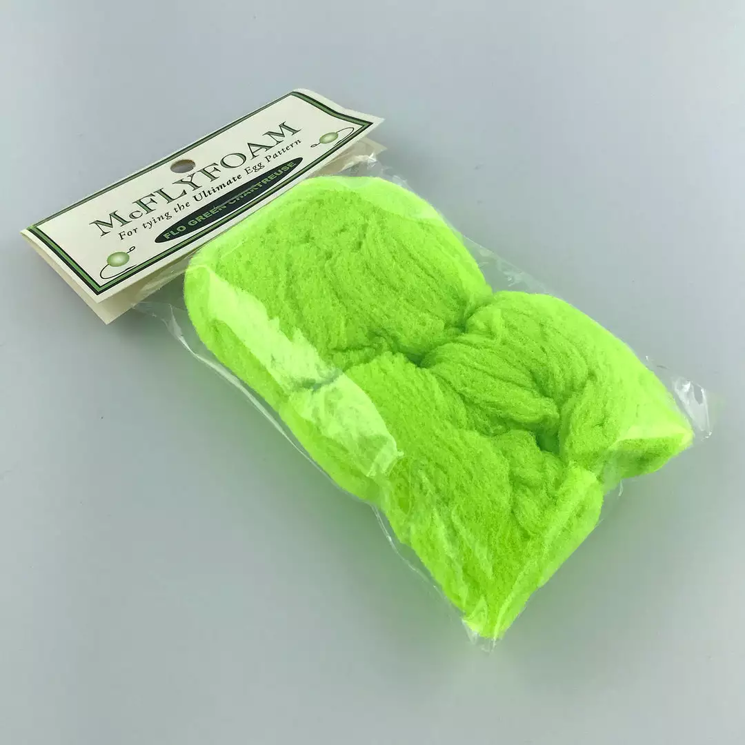 McFly Foam is a strong, stretchy, continuous filament yarn which is dyed using colorfast dyes that prevent it from fading. Use it to tie eggs, glo bugs, and sculpted patterns like sculpins, crab patterns, and woolhead flies. McFly Foam is widely regarded as the best yarn for creating perfectly round eggs and is very easy to work with and blend. If you’re looking for the best fly tying material to tie beautiful egg patterns with efficiency and ease, look no further. This stuff flat out catches fish and is available 49 beautiful colors!