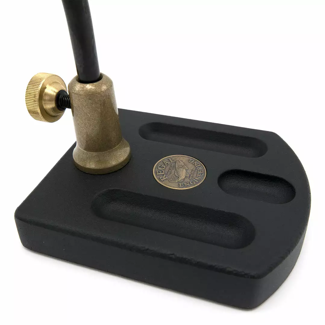 The Regal Travel Vise is the perfect fly tying vise to fit in your boat bag, back pack, or luggage. Even though this vise was already regarded as one of the best travel vises on the market, Regal has found a way to make it even better! They have changed the stem and base design to make it as compact and stable as possible while allowing the vise head to rotate 360 degrees without contacting the stem. This makes it much easier to look at the other side of your flies while tying. The new stem also changes the center of gravity providing an even more rock solid tying platform. Includes regular head with jaws that accommodate hook sizes 22 to 1/0, articulating stem for a customizable tying angle, and aluminum pedestal base with pockets to store your hooks and beads. The Regal Travel Vise is a tried and true travel vise that will hold your flies with confidence. We can’t recommend it enough!