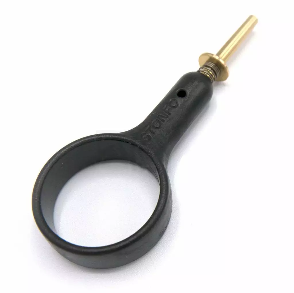 The Stonfo Pinza Elite Hackle Pliers allows for single-hand control when working with hackle and other delicate materials. This high quality hackle plier features hard plastic construction, O-shaped finger loop for effortless winding, and a brass spring-loaded material clip. Depressing the round collar exposes a hook which securely holds hackle without breaking it.