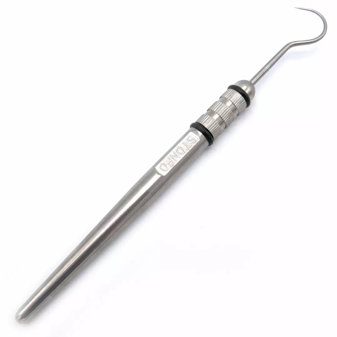 Stonfo’s U-Shaped Bodkin makes effortless work when pulling trapped fibers on your fly. This high quality fly tying tool features a machined stainless steel handle with knurled finger grips and rubber rings for added comfort and control. The fine-needle point makes precise work of normally difficult tasks and comes complete with a rubber cap for when not in use.
